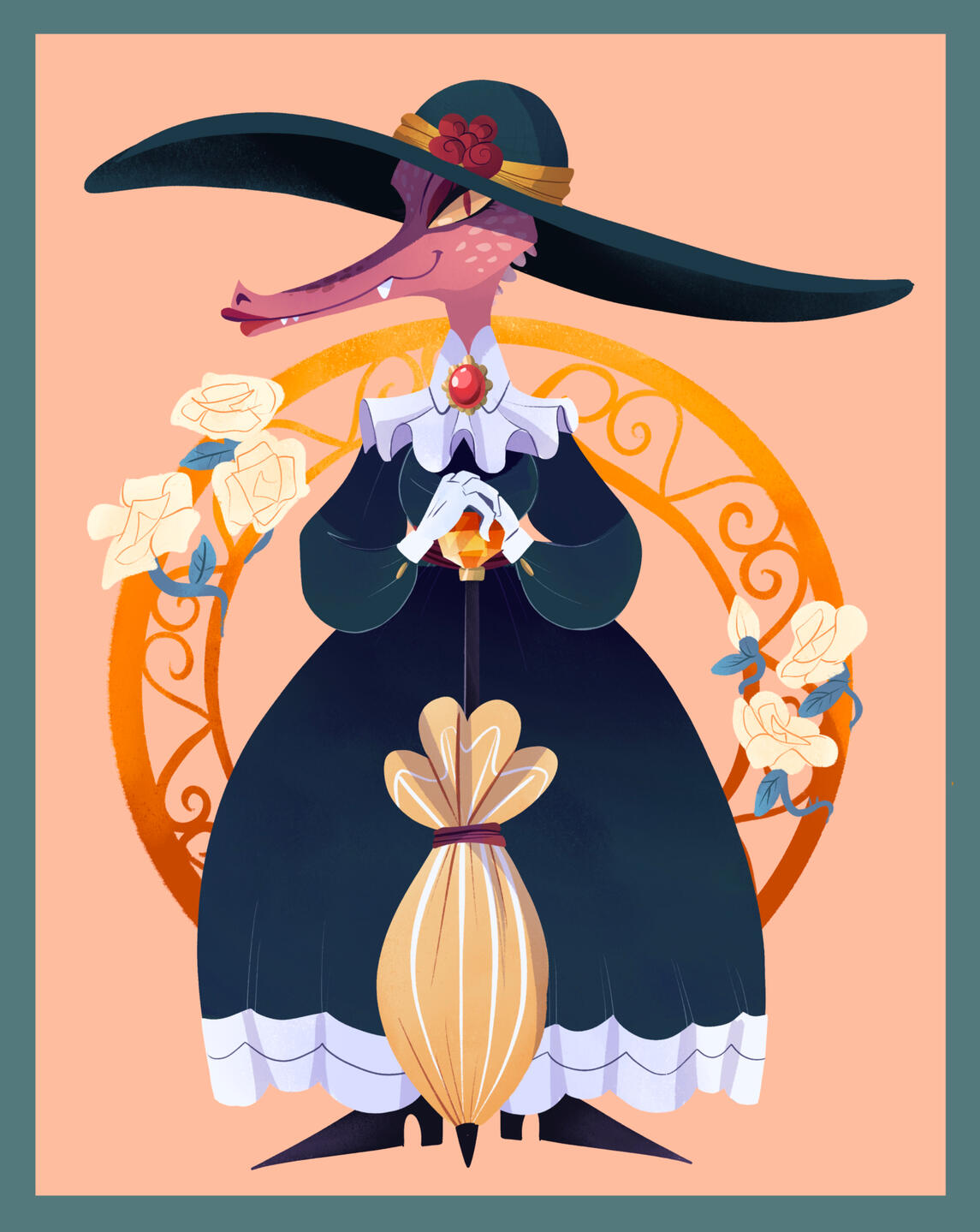 Simple or solid colour background, with decorations (flowers etc.) optional.